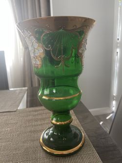 Bohemia green glass vase 31 cm decorated enamel and gold, 1 pcs$75Los Angeles, CA