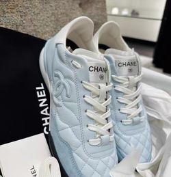 Chanel 25S Calfskin Round Toe Lace Up German Trainers Shoes Thin Bottom Shoes Low Top Life Casual Shoes Women's Blue$245New York, NY
