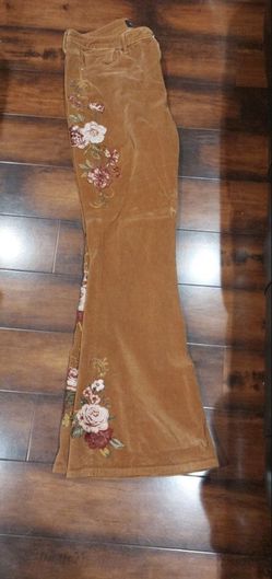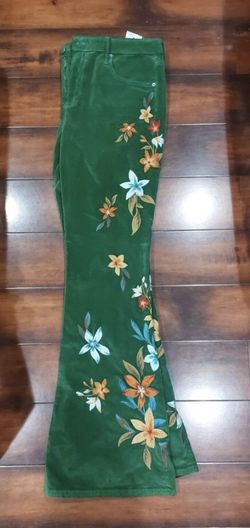Women Bell Bottom Pants Corduroy Green Embroidered Flowers $99Seattle, WA