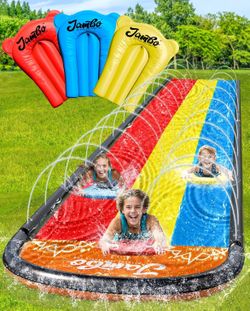 JAMBO Premium Triple Water Slide and 3 Bodyboards, Updated Model Slip Splash and Slide Heavy Duty Water Slides- 3-Way Sprinkler System, Splash Mat Pad$55Kenbridge, VA