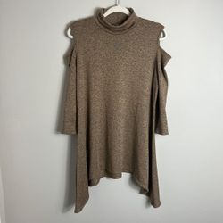 Clara Sun Woo Cold Shoulder Tunic Blouse Brown Size Medium Made in USA