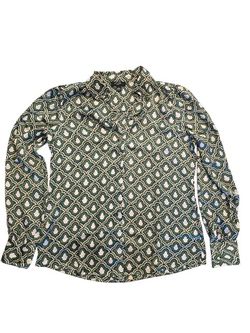 Haver London Mod Green Pattern Button Up Women's Blouse Small