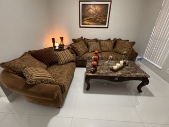 Elegant 4-Piece Living Room Set β Sofa, Loveseat, Chaise, & Marble Top Tables$650Miami, FL