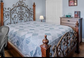 ποΈ Elegant Wood & Wrought Iron Bed Frame β Queen Size π° $350 β Full frame set$350Miami, FL