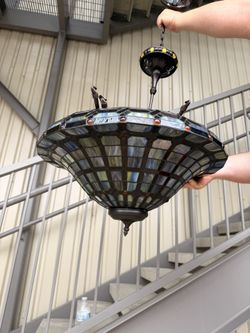 Vintage Tiffany Style Stained Glass Chandelier - Mission Craftsman Inverted Pendant - 3-Light$149Lake Worth, TX