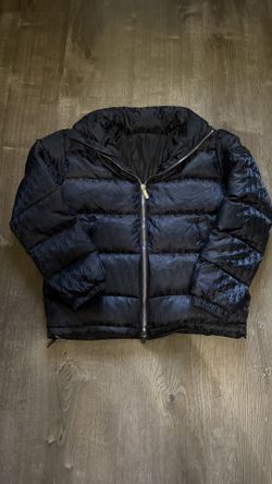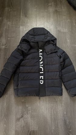 Men’s Black Moncler Puffer Jacket with Reflective Letters$750Riverdale, MD