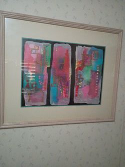 Large Multicolored Abstract Art Glass Picture With Beige Wood Trim 3 Ft By 3 Ft$20Mesa, AZ