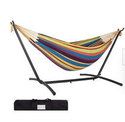 9 ft. 2-Person Double Fabric Hammock with Free Standing Steel Stand Include Carrying Bag and Pillow, Yellow Stripes$45San Bernardino, CA