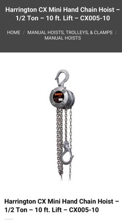 Harrington CX Mini Hand Chain Hoist – 1/2 Ton – 10 ft. Lift – CX005-10$250Kenner, LA
