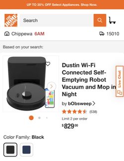 bObsweep Dustin Plus Robotic Vacuum Self-Emptying Mop Wi-Fi Black Night$250East Liverpool, OH