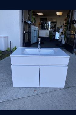 New Assembled, 30" Wall Mounted Bathroom Vanity with Ceramic Top and Sink, Storage Cabinet, Faucet Combo Set$150Fullerton, CA