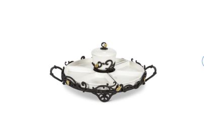 White Stoneware Crudite Server With Metal Gold Leaf Handled Base. $170Olathe, KS