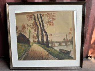 VINTAGE Robertson Framed Matted Watercolor of European Waterfront$60Panama City, FL