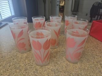 Vintage Set Of 9 Frosted Salmon Pink Tulip Glasses$50Mesa, AZ