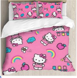 DIEZ Cute Hello Cat Kitty Duvet Cover Queen 100% Cotton Kawaii Cat Rainbow Clouds Bedding Set Pink Japanese Anime Style Comforter Set for Girls Women $25Peoria, AZ