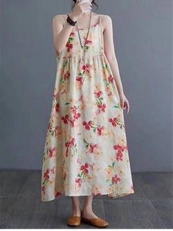 Women Sleeveless Spaghetti Strap Dress Cotton Floral Dresses Crew Neck Sexy Maxi Sundress Size: M$25Peoria, AZ