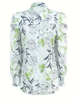 Floral print button front blouse elegant long sleeve top. Size: XL$5Peoria, AZ