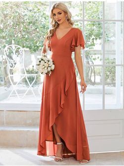 Ever Pretty Charming Chiffon Bridesmaid Dress with Lotus Leaf Hemline Color: Burnt Orange Size: 8 (L)$35Peoria, AZ