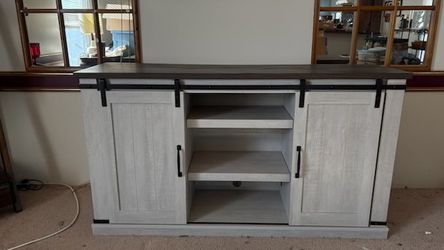 TV cabinet, NEW, Pottery Barn, Updated barn doors, fits 60 inch TV, Plenty of shelves, beautiful hardware, $298$298Creve Coeur, MO