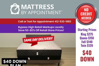 π» Mattress Deals β Drive Away Today! $40 Down β No Credit Check!$120Mckees Rocks, PA