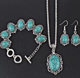 3pcs Women's Vintage Turquoise Bracelet Necklace Earrings Set, Healing Stone Decoration$12West Palm Beach, FL
