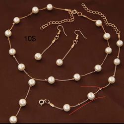 4pcs Gold-color Necklace Earring Bracelet Set Ladies Elegant Imitation-Pearls Collection Temperament Tassel Jewelry$10West Palm Beach, FL