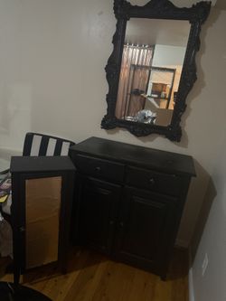 🖤 Black Buffet, Mirror & Mini Storage Cabinet Set – Modern & Elegant – $150 (OBO) $150Pasadena, MD