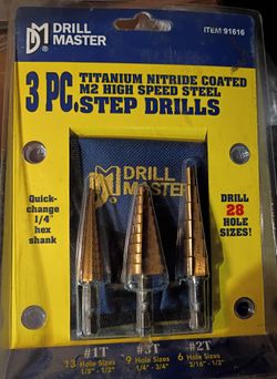 3 Piece Titanium Nitride Coated M2 High Speed Steel Step Drills$10Riverside, CA