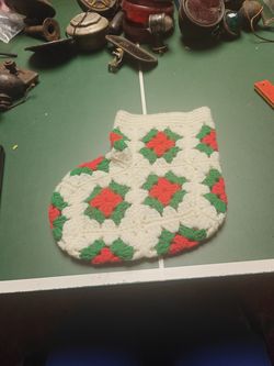 Vintage Handmade Crochet Pointsettia Granny Square Christmas Stocking$15Wayne, NJ