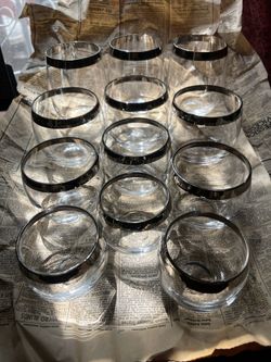 Vintage Silver-Rimmed Glass Cup Set – 12 Pieces (4 Sizes) $60Austin, TX