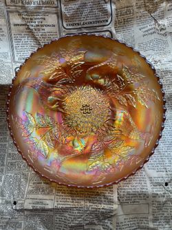 Antique 1920s Fenton STAG & HOLLY Glass Bowl$60Austin, TX