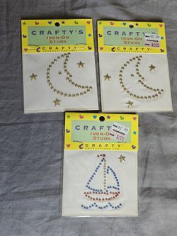 Lot Of 3 Vintage Crafty Productions Iron-On Studs Sailboat & Moon Appliques New$8Laurel, MD