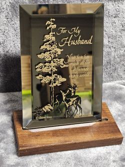 Vintage Dacra Glass 045 Mirrored Beveled Plaque w/ Wood Stand For My Husband... $10Laurel, MD