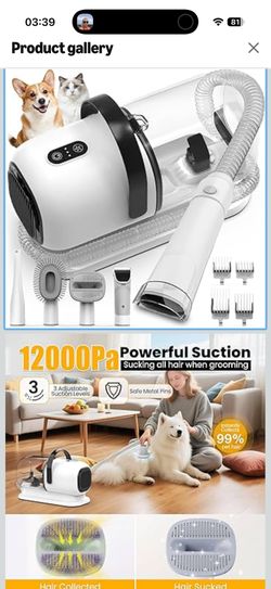 Dog Grooming Vacuum, All-in-One Pet Grooming Kit with Hair Clipper & Shedding Brush, Low Noise 12,000Pa Dog Hair Remover Vacuum, Pet Groomer Set with $55El Monte, CA