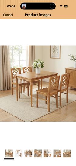 5-Piece Solid Wood Dining Table Set for 4, Farmhouse Rectangular Kitchen Table with 4 Soild Chairs, Space-Saving Design for Small Dining Room, Apartme$150El Monte, CA
