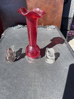 ANTIQUE VINTAGE RED BLOWN VASE AND TWO BLOWN GLASS BIRDS MAKE ANY OFFER FOR ALL$1Las Vegas, NV