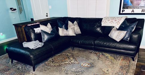 🛋️🇮🇹 Ballari 100% Italian Leather Levi Indigo Blue Sectional Sofa w/ Left-Facing Chaise$2,000Sacramento, CA