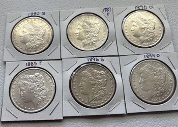 Six Morgan Silver Dollars 1896 S, 1880 S, 1885 P , 1889 P , 1894 O , 1890 CC ,.$380Hicksville, NY