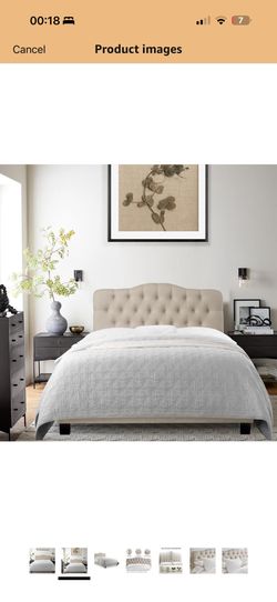 King Size Bed, Bed Frame with Adjustable Button-Tufted Headboard for Bedroom/Linen Upholstered/Wood Slat Support/Easy Assembly,King$50Hacienda Heights, CA
