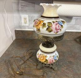 Vintage Mid Century White Beige Pink Painted Rose Glass Hurricane Lamp Scalloped Top$150Waynesboro, PA
