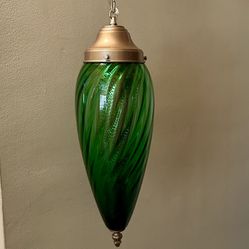 Vintage Mid Century Modern Ribbed Murano Glass Hanging Pendant Swag Lamp — Ht. 17"$300Whittier, CA
