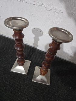 Brown Wood & Aluminum Pillar Candle Holder Set (RARE)$50Lincoln Park, NJ