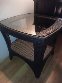 Dark Brown/Black Wicker Side Table with Tempered Glass Top + Lower Shelf — Excellent Condition$125Burbank, CA