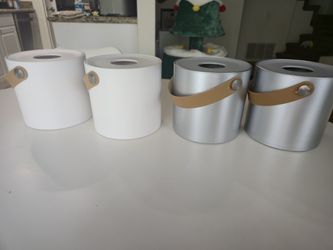 Portable Plastic Round Tissue Holder Box with Leather Handle for Home, 2x White & 2x Silver$20Yorba Linda, CA
