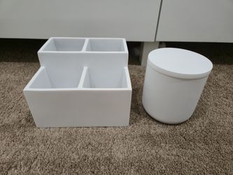 White Bathroom Makeup/Toiletry Storage, Small Matt Resin Canister with Lid + Heavy Resin Organiser$10Yorba Linda, CA