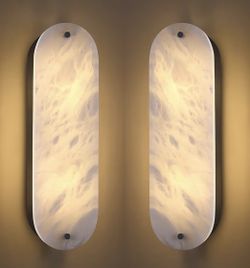 2-Pack Seenming House 17.13" Oval Spanish Marble Wall Sconce Alabaster E12 Base$85Monument, CO