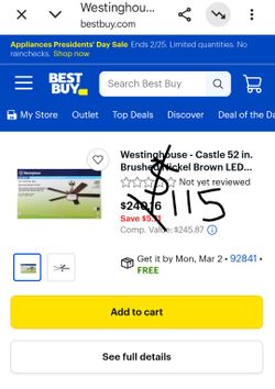 Westinghouse - Castle 52 in. Brushed Nickel Brown LED Indoor Ceiling Fan$100Fountain Valley, CA