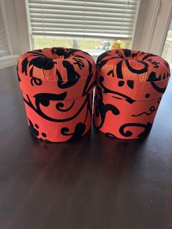9” Orange, Black Florist’s Decorative Hat Boxes Set of 2, Fabric Storage $15Flower Mound, TX