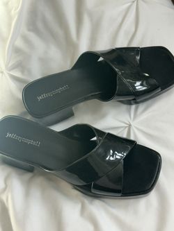 Jeffrey Campbell black patent platform heels chunky mule sandals$65Banks, OR