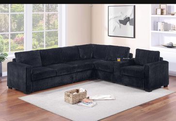 Corduroy Couch New In Box Black Color USB Port Cup Holders $340Imperial Beach, CA